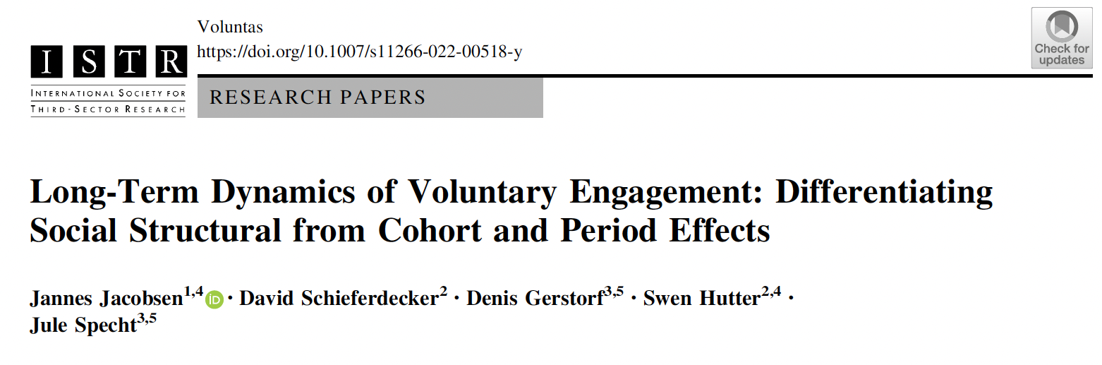 Jannes Jacobsen, David Schieferdecker, Denis Gerstorf, Swen Hutter und ich haben ein neues Paper bei Voluntas veröffentlicht!